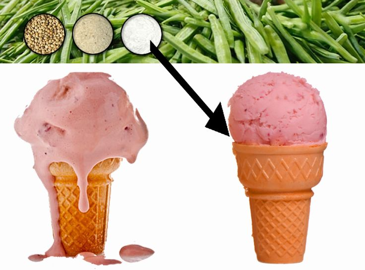 아이스크림-구아검은 아이스크림의 점도를 높여 질감을 부드럽게 만들어주고, 빙수를 안정화하는데 사용됩니다.