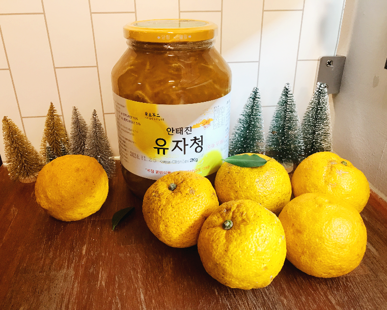 유자차: 따뜻한 물에 유자청을 타서 마시면 감기 예방과 피로 회복에 좋습니다.