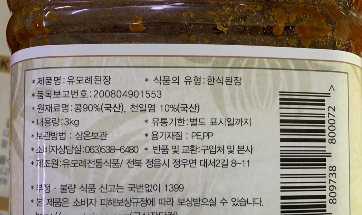 유모례 전통 장류에는 식품 보존제를 사용하지 않습니다