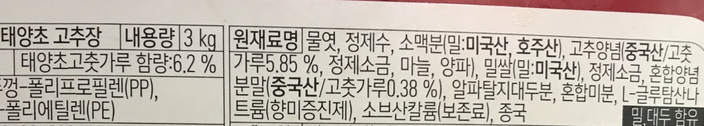 | 고추장의주요성분 | 국산찹쌀,메주가루,매실등 국산건강재료 | 수입고추가루,밀가루,고추양념등 첨가 |