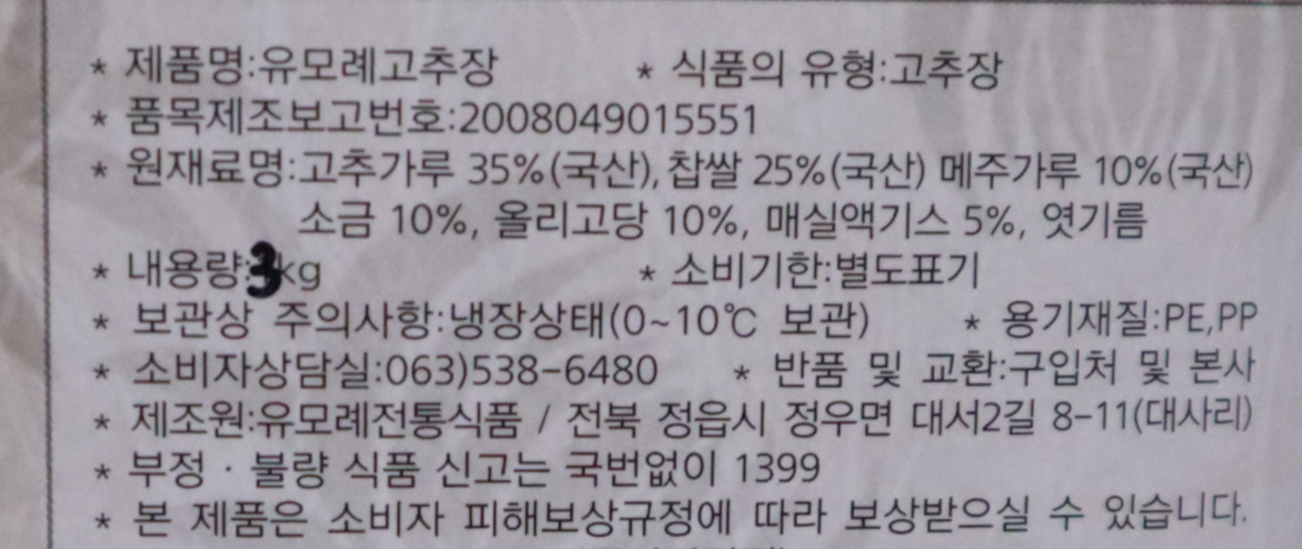 | 구 분 | 유모례 고추장 | 일반마켓 고추장 |