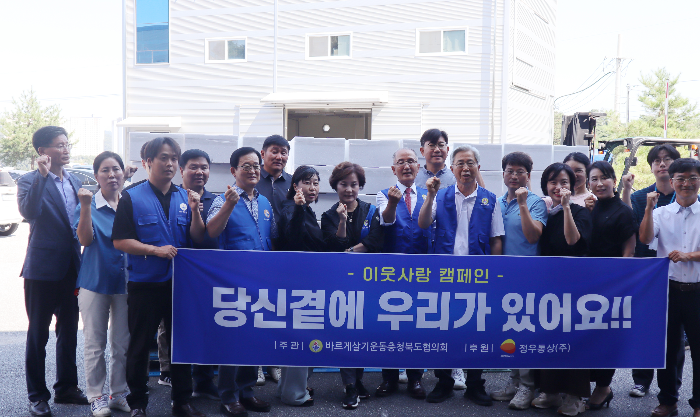 바르게살기운동 충청북도협의회(회장 전대수)는 지난 26일 청주시 서원구 남이면 정우통상㈜(대표 정우용) A동에서 `이웃사랑 - 당신 곁에 우리가 있어요' 캠페인을 진행하였습니다. 이날 캠페인에는 정우통상 임직원, 바살협 임원과 자립지원 전담기관 등 30여 명이 참석해 자립준비 청년과 공동생활가정, 미혼모 시설, 영실 애육원 원생 등 어려운 이에게 설맞이 후원물품을 전달했습니다. 이날 전달된 물품 270세트(800만 원 상당)는 정우통상㈜와 삼성산소㈜에서 후원했습니다.