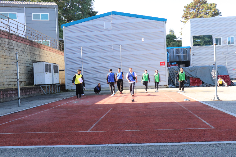 족구, 피구에 이어 신발 던지기 게임이 진행되었습니다. 팀별로 신발을 던져 20m 거리에 가장 가깝게 던진 빨강팀(3조)이 활약이 커 1위하였습니다.