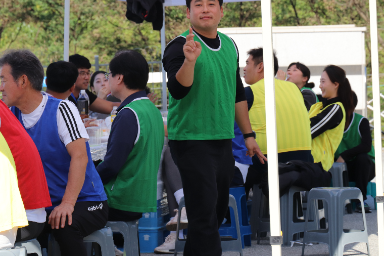 초록, 노랑, 빨강, 파랑! 4가지 색깔로 물든 체육대회 현장! 족구 경기는 시작부터 후끈 달아올랐습니다. 발로 공을 차며 상대방 코트에 공을 넘기는 짜릿한 순간들이 이어졌고, 그 결과 족구는 파랑팀이 1등을 차지하였습니다.