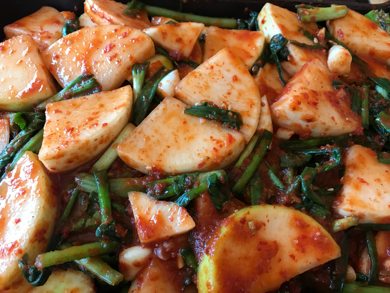 김치 양념은 젓갈의 짠맛, 고춧가루의 매운맛, 마늘과 생강의 알싸한 맛이 어우러져야 합니다. 큐원 가루엿은 김치 양념의 간을 맞추고, 김치의 맛을 조화롭게 만들어줍니다.